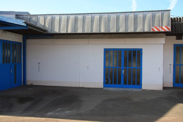 Die Lagerhalle 2 hat eine Fläche von 64 m2. Der Zugang erfolgt über ein Stahlflügeltor mit einer Breite von 2,50 m.